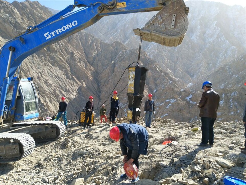 破碎锤开采石头没产量用岩石劈裂机